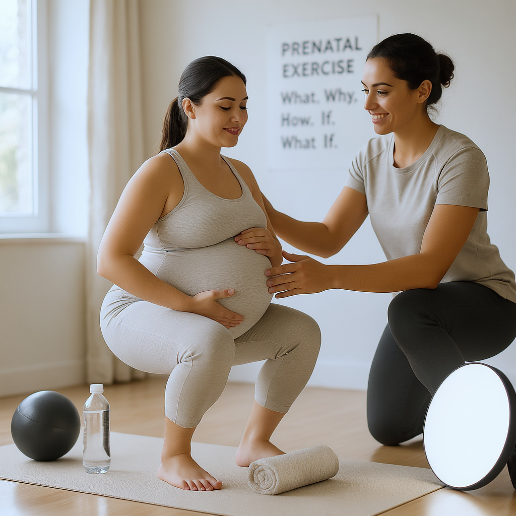 What: Practical, evidence-informed guidance for safe exercise during pregnancy — gentle cardio, strength, mobility, breathing and pelvic-floor work ta...